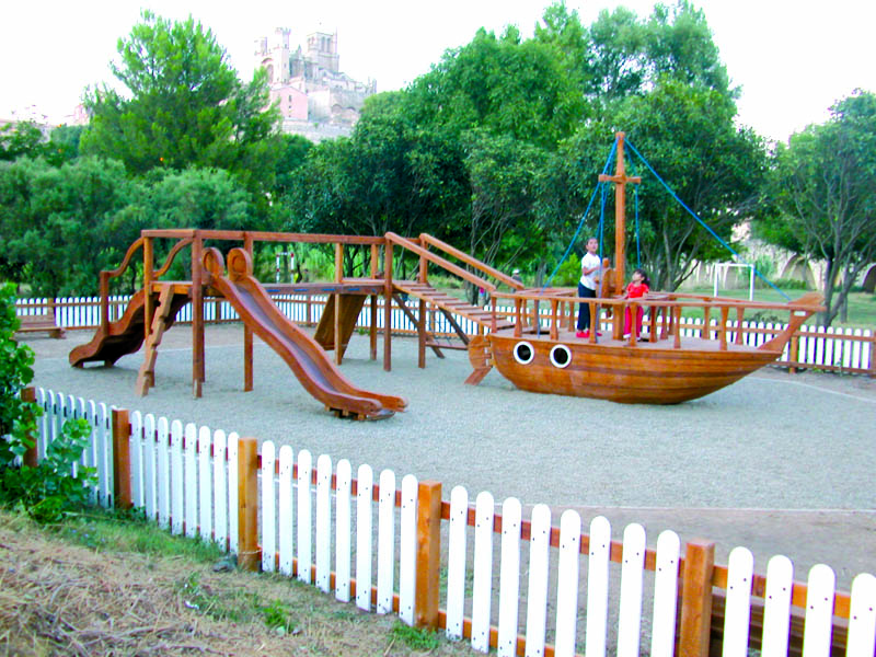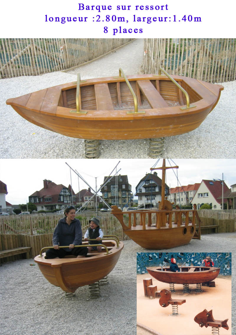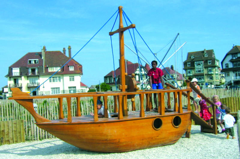 Aire de jeux en bois sur le thème du bateau et de la mer