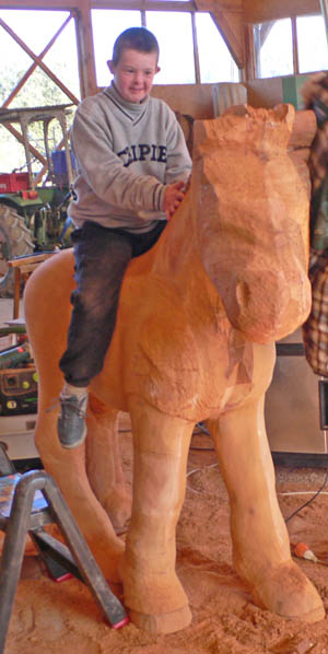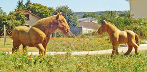 la jument et son poulain, tous deux réalisés grandeur nature et en bois massif: