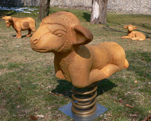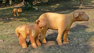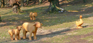 Voici nos dernières réalisations de sculptures pour le plus grand plaisir des enfants, des parents et des grands-parents. Elles s'intègrent parfaitement dans ce merveilleux Parc des Chataigniers au Vigan.La famille moutons avec le papa Bélier, la maman Brebis, les deux petits Agneaux; à proximité, une oie et... un loup... de quoi alimenter contes et légendes. Le tout réalisé en Red Cedar, bois imputrescible en provenance des forêts canadiennes gérées écologiquement depuis toujours.