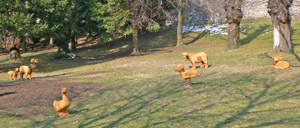 La vue d'ensemble de la mise en scène des animaux dans le parc des chataigniers